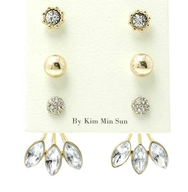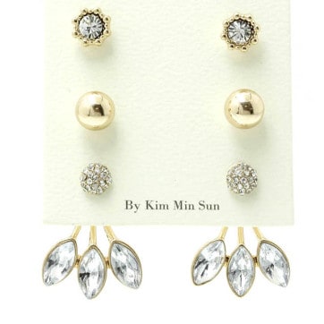 3 PAIR STUD AND JACKET EARRING -Crystal Leaf