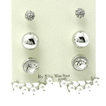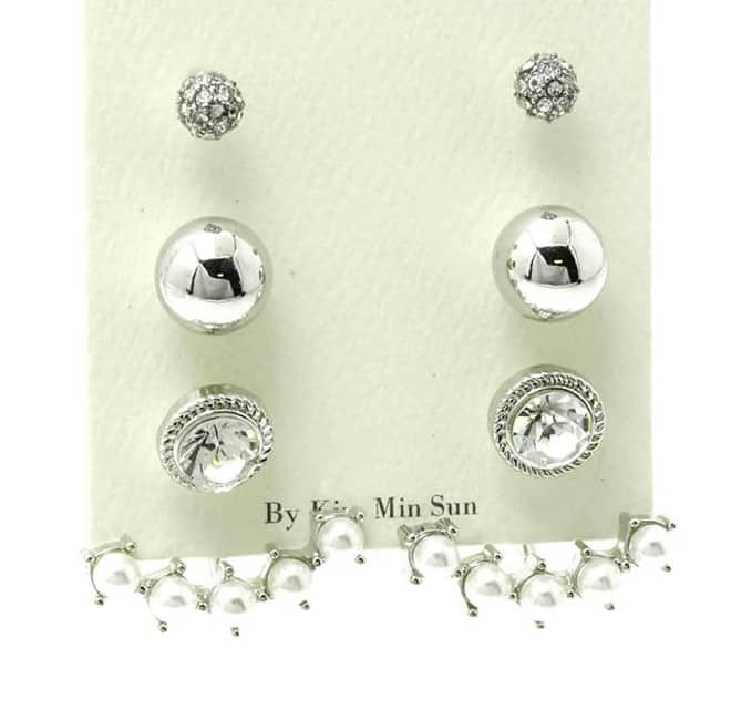 3 PAIR STUD AND JACKET EARRING-Pearls Silver