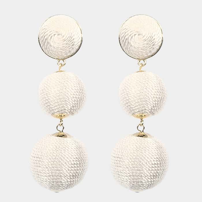 BonBon Threaded Ball Earrings – white