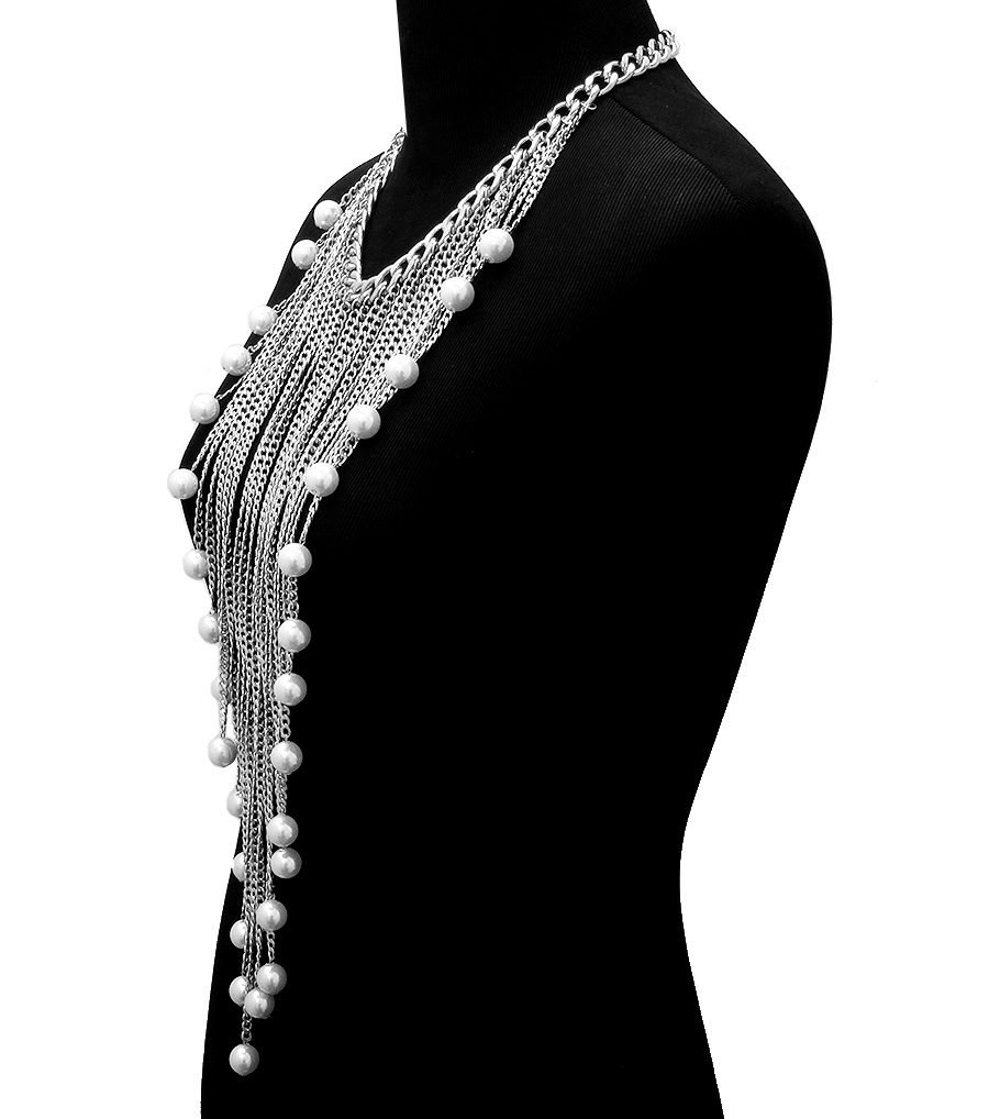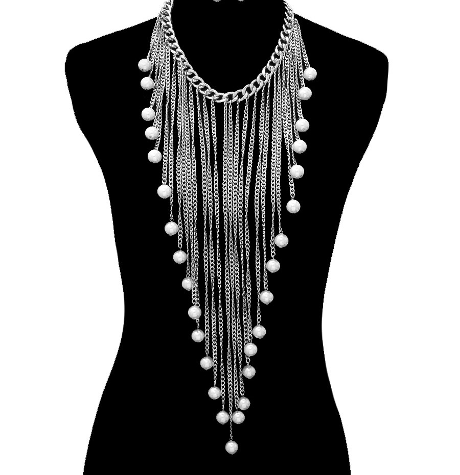 Gold metal statement necklace set with clear stones dangling charms. Lobster clasp closure