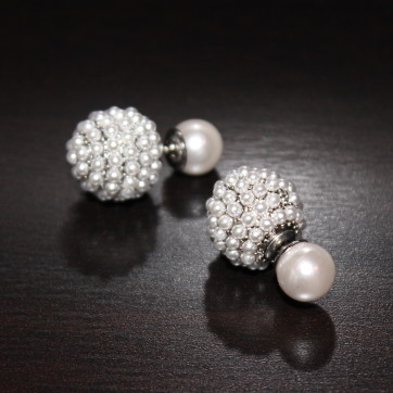 Double Sided Pearl and Cluster Pearl Earrings – White