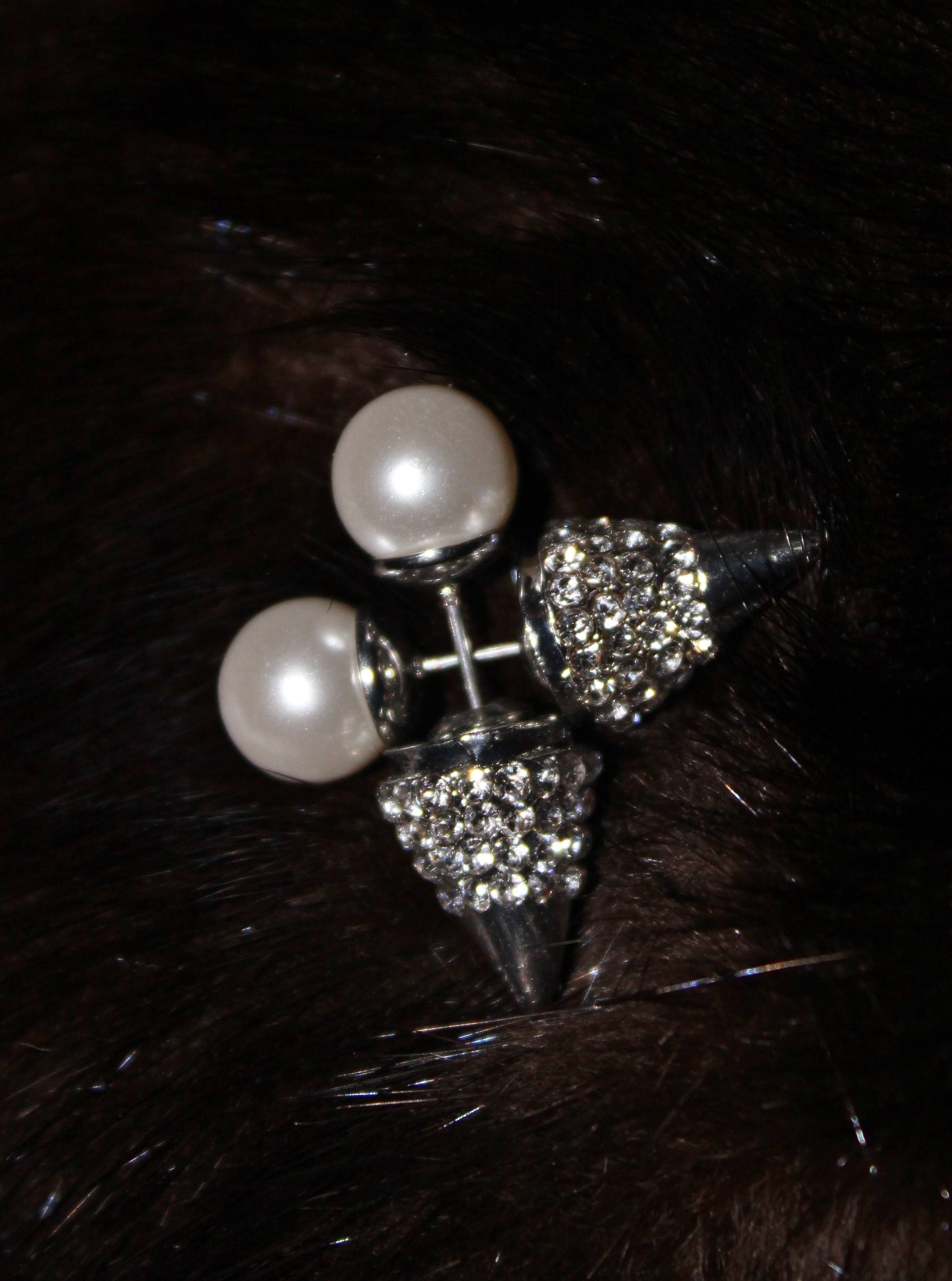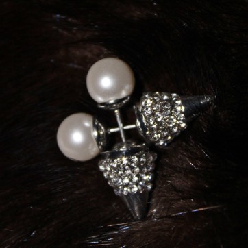 Be the first to review “Double Sided Pearl and Pave Diamond Spike Earrings – Silver”