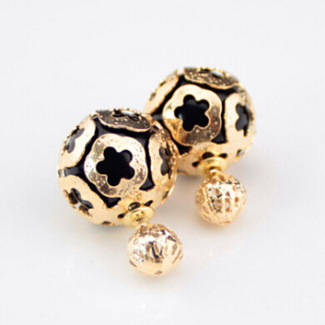 Gold Flower Double Sided Earrings -Black