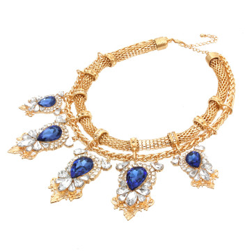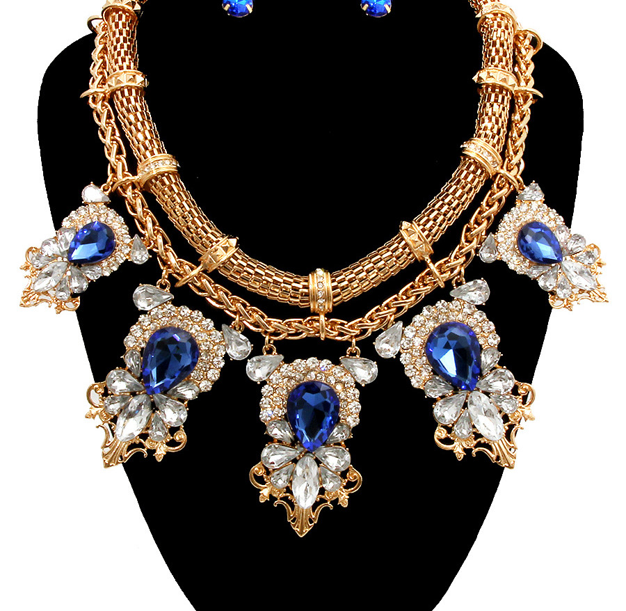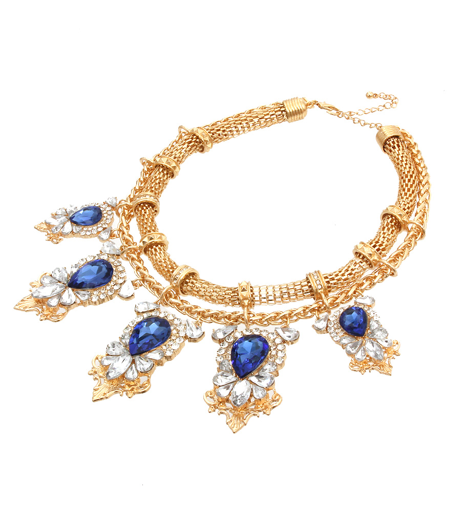 • Gold Mesh Chain with blue Stone. Lobster Clasp Closure.