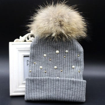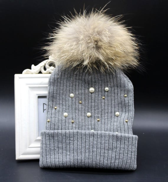 Be the first to review “Racoon Fur and Pearl PomPom Hat – Grey”