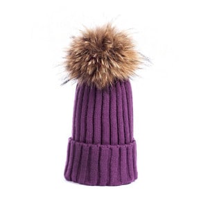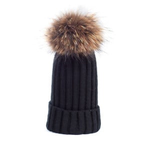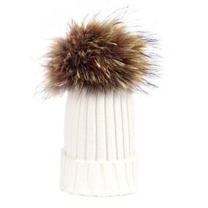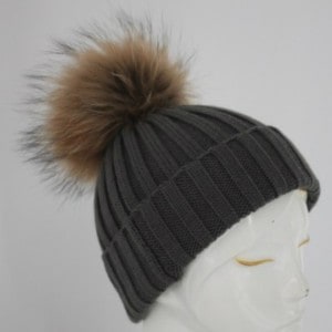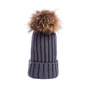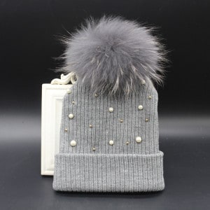 Pearl and Fur PomPom Hat- Grey pompom and hat